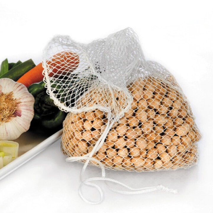 Esta bolsa de red está fabricada en nilón que aguanta elevadas temperaturas. Podrás utilizarla sin problemas cuando hagas tus guisos. Se presenta en un blíster.