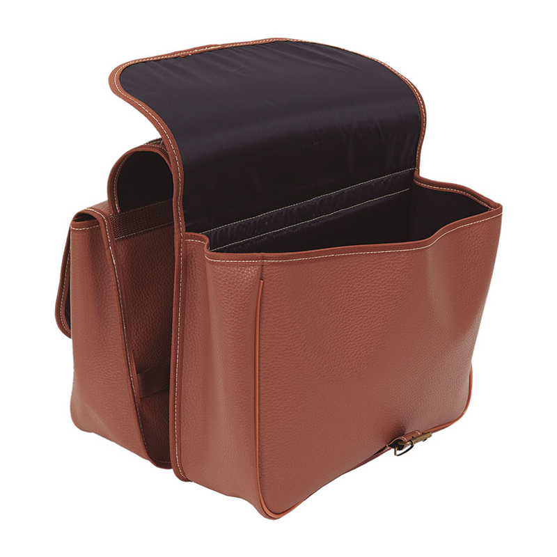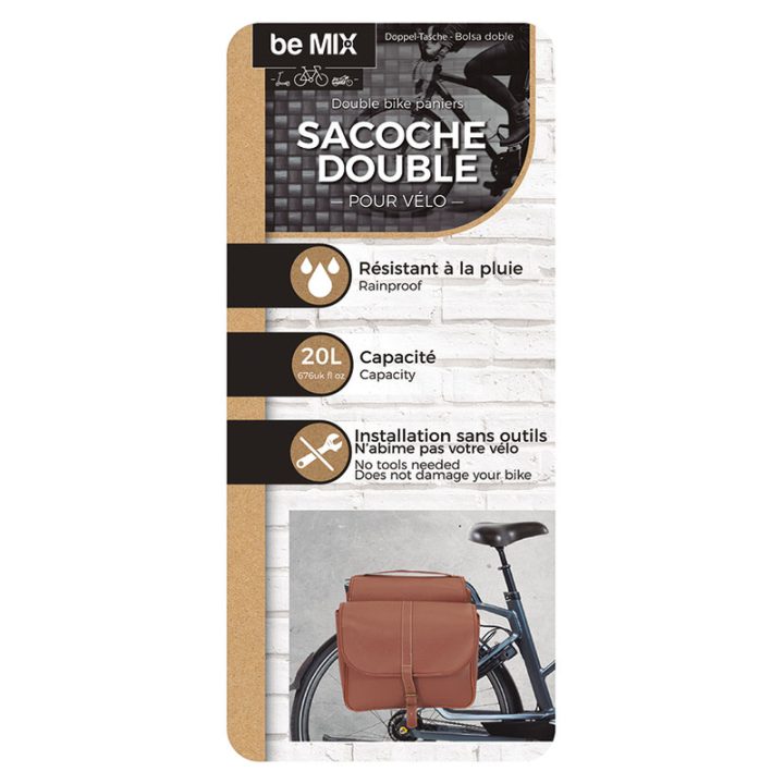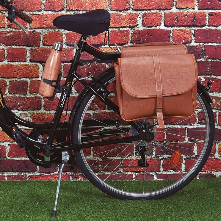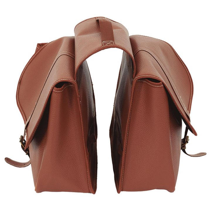 Esta bolsa de polipiel marrón es doble y se coloca en el portaequipaje de tu bicicleta como una alforja. No se requiere herramientas para su instalación. Además es resistente a la lluvia, no daña la pintura de la estructura, tiene una capacidad de 20 l y tiene unas medidas de 27x12xh.34 cm.
