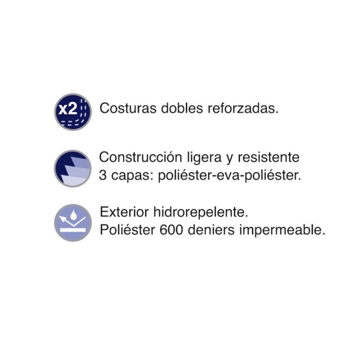 Opción ideal para transportar tus herramientas y accesorios de trabajo, gracias a su construcción ligera pero resistente de 3 capas, poliéster-eva-poliéster, costuras dobles reforzadas y exterior hidrorepelente.