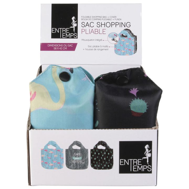 Esta bolsa te dará un estilo Vintage cuando salgas de tu casa para hacer la compra diaria. Además, la podrás plegar una vez la hayas usado y guardárla en tu bolso para la próxima compra. Se sirve en una caja expositora de 12 unidades en modelos surtidos.