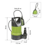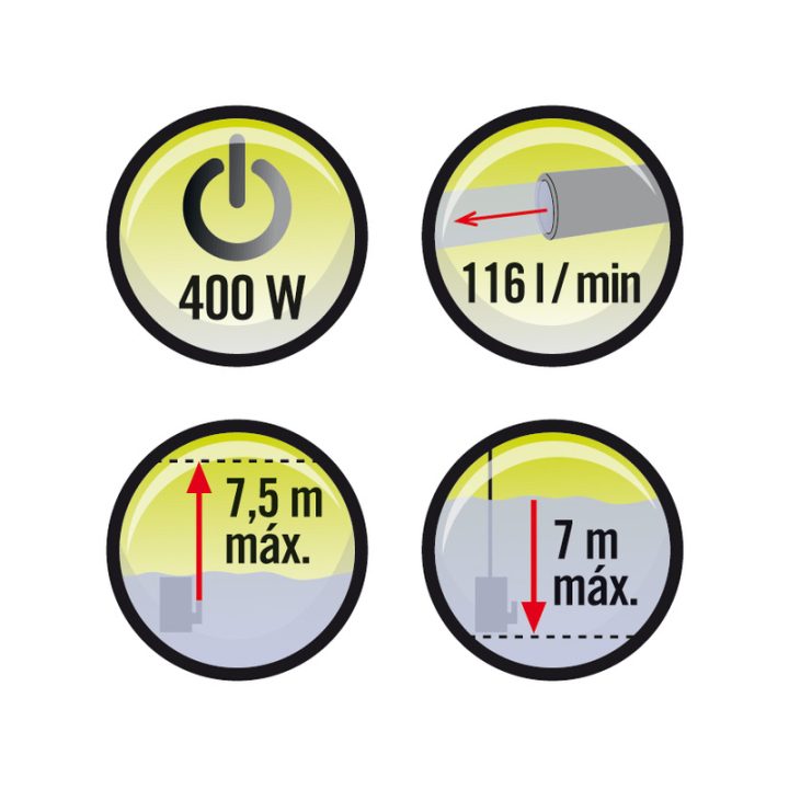 Esta bomba de drenaje es sumergible en aguas limpias y permite extraer agua de pozos o depósitos de cierta profundidad, para el riego o el abastecimiento doméstico. Incluye cable de 10 metros y salida de impulsión 3/4-1″. Viene presentado en caja. Puedes consultar las medidas en el croquis que tenemos en la web.