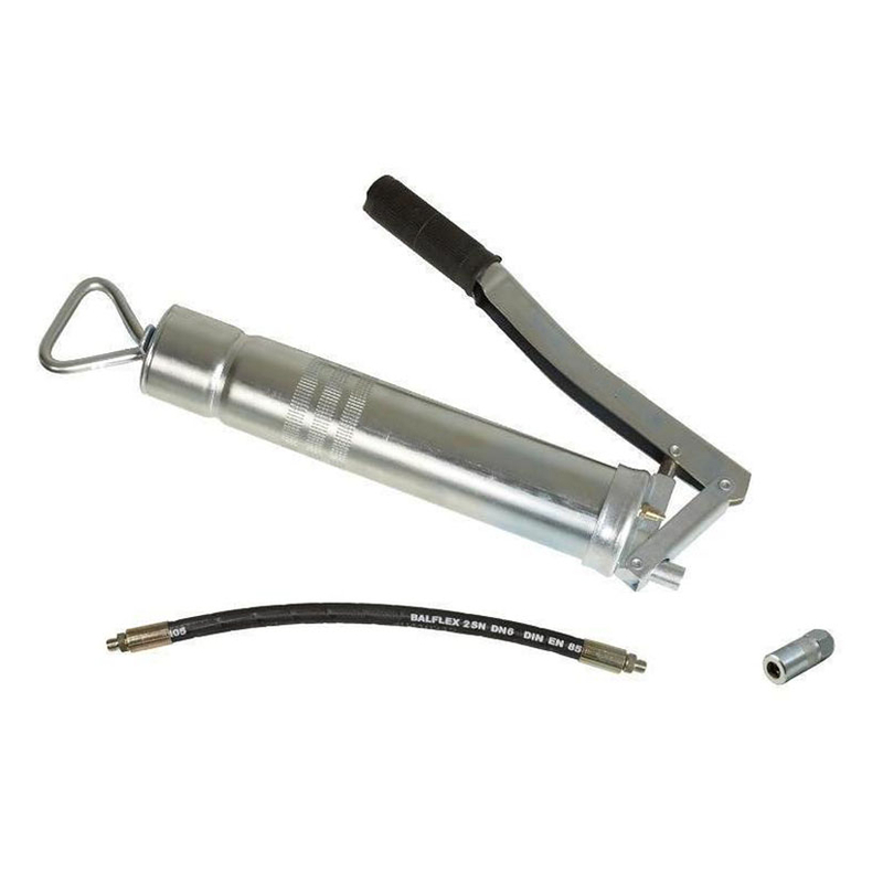 Manguera (racor) flexible y boquilla hidráulica. Apto para cartuchos de grasa 400 gr (DIN 1284) o grasa a granel. Alta calidad, fabricado en España.