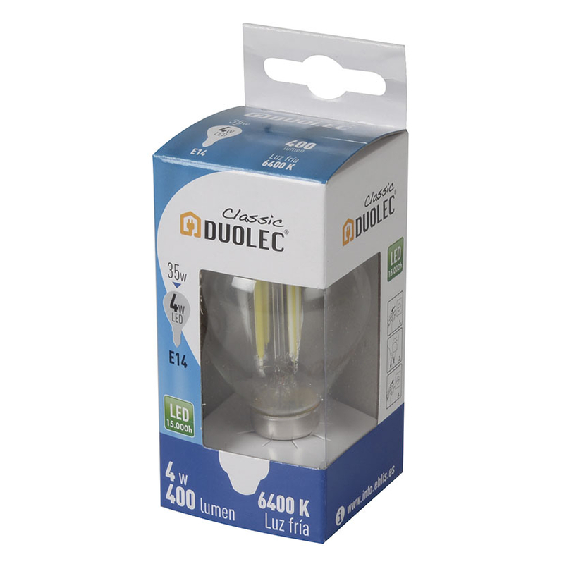 Ficha técnica – Bombilla Led Classic mini globo DUOLEC E14 luz fría 4w