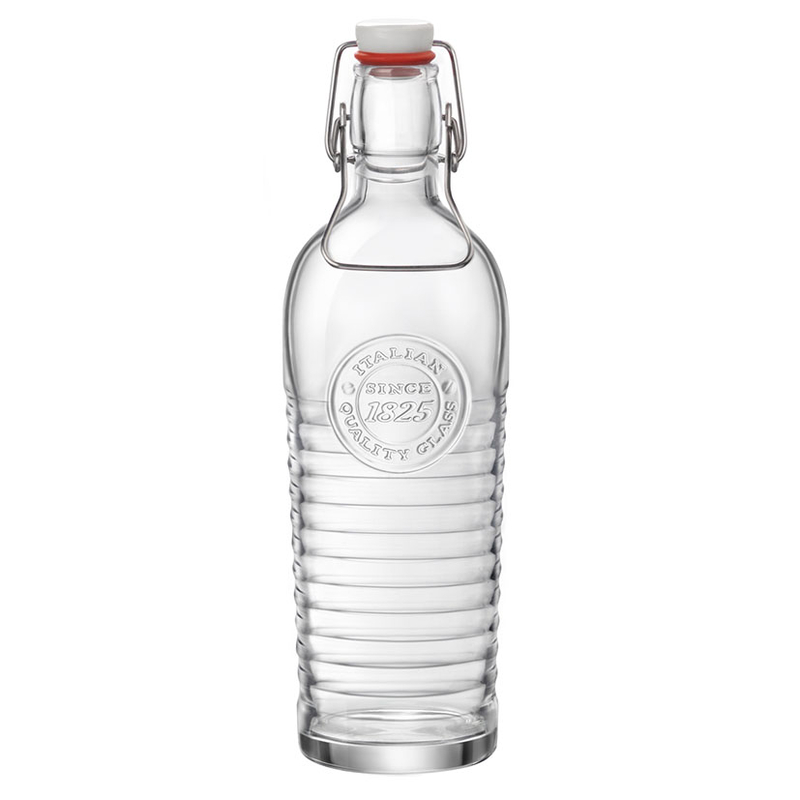 Esta botella está fabricada en vidrio de una de la marcas más prestigiosas del mercado. Tiene un diseño con un estilo vintage e industrial. Tiene un tapón basculante y junta de silicona que cierra de forma hermética la botella. Tiene una capacidad de 1,2 litros. Se sirven 6 unidades.