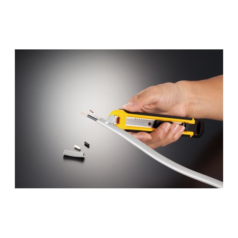 · Cutter con cuchilla troceable de 12,5mm ideal para corte engeneral: plástico, cartón, recubrimientos de cables, etc.