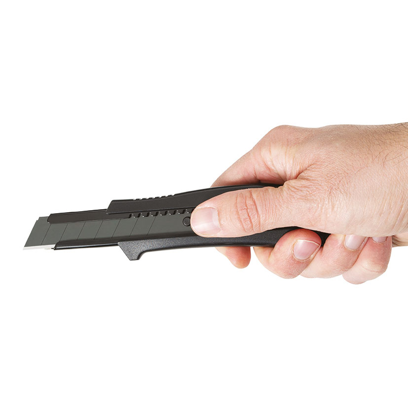 El cortador manual de hoja retráctil con bloqueo automático, ajustable y regulable. Tiene el mango fabricado en ABS para un cómodo agarre. Incluye cuchilla de 18 mm tipo SK2H con tratamiento especial para mejor afilado. Proporciona cortes limpios y de precisión con poco esfuerzo y está especialmente concebido para proporcionar el mayor rendimiento al cortar. Se presenta en un blíster.