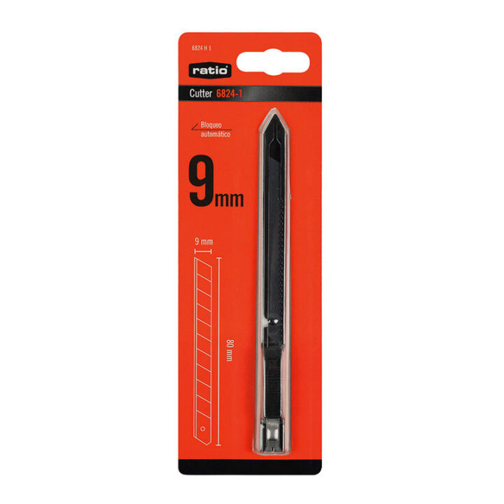 Este cortador de la marca RATIO tiene el mango en acero inoxidable que le confiere mayor resistencia y durabilidad. Su cuchilla de 9 mm es de color negro y tiene un tratamineto especial para un mejor afilado. Tipo de cuchilla SK-2 80x9x0,4 mm. Viene presentado en un blíster.