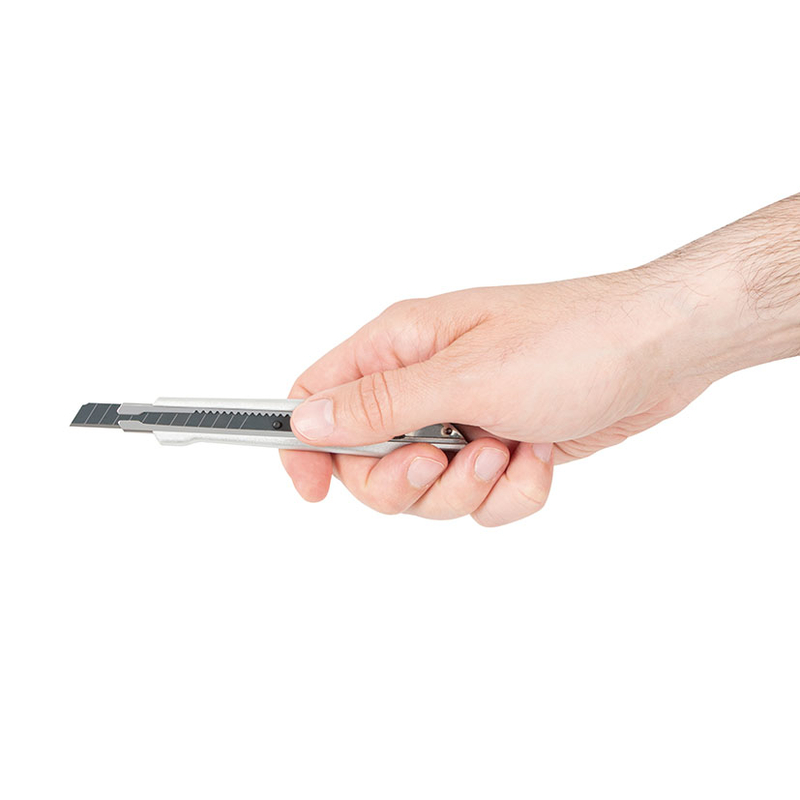 Este cortador de la marca RATIO, tiene el mango en ABS con guías interiores en acero inoxidable. Su cuchilla de 9 mm tiene un tratamineto especial para un mejor afilado. Tipo de cuchilla SK-2 80x9x0,4 mm. Viene presentado en un blíster.