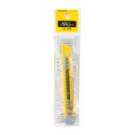 Cortador manual con bloqueo automático, recomendado para trabajos ligeros y de oficina. El mango es de plástico ABS, resistente y duradero. El ancho de cuchilla es de 9 mm. Se presenta en una caja.