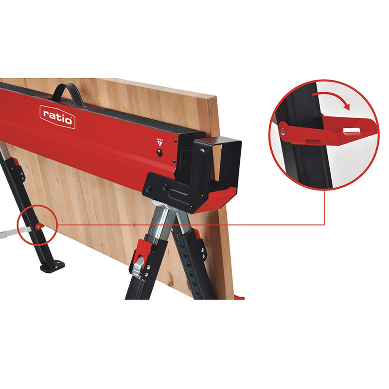 Fabricados con acero de alta calidad, ofrecen durabilidad y resistencia. La superficie de trabajo es antideslizante, lo que proporciona una estabilidad adicional y un mejor soporte para las piezas, garantizando un entorno de trabajo seguro. Equipados con un mecanismo de apertura rápida y dos brazos de soporte robustos, estos caballetes son prácticos y fáciles de usar.