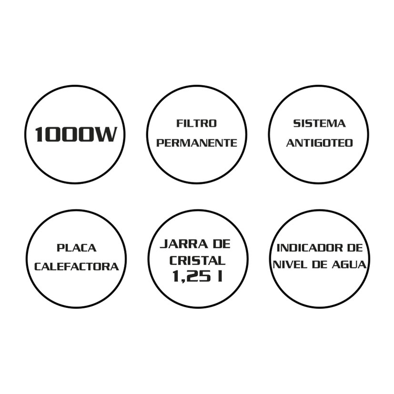 Esta cafetera de goteo tiene una jarra de cristal graduada que te permite ver en todo momento el nivel del café. Gracias a la placa calefactora antiadherente podrás conservar durante más tiempo el café caliente. Cuenta con un filtro permanente extraíble y un sistema antigoteo. Puedes ver en todo momento el nivel de agua. La cafetera dispone de un LED que te indica su funcionamiento. Tiene 3 años de garantía. Viene presentada en caja.