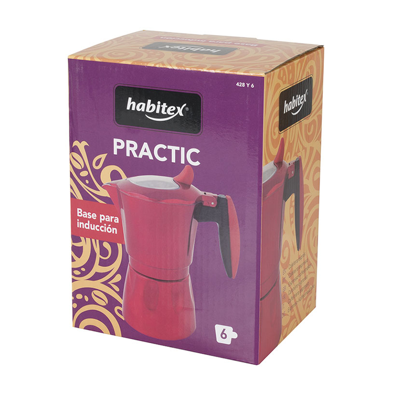 Esta cafetera HABITEX está fabricada en aluminio y es de color rojo. Es ideal para todo tipo de cocinas, en especial las de inducción. Viene presentado en caja.
