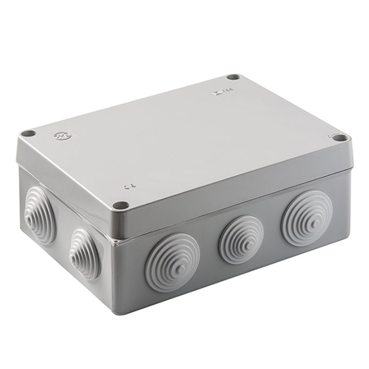 Caja de empalme con 10 conos y tapa con tornillos para su perfecta instalación.