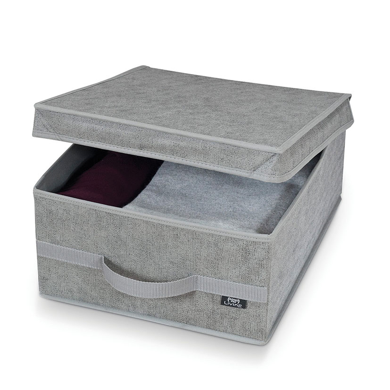 Esta caja guarda ropa de la serie Stone de tamaño M tiene unas dimensiones de 35x45xh.18 cm. Es perfecta para ordenar y ahorrar espacio en tu armario protegiendo del polvo y la suciedad de su interior. En nuestra web puedes mirar más sistemas de ordenación para armarios de esta misma serie. Muy práctica para transportar tus edredones cuando salgas de viaje y optimizar al máximo el espacio.