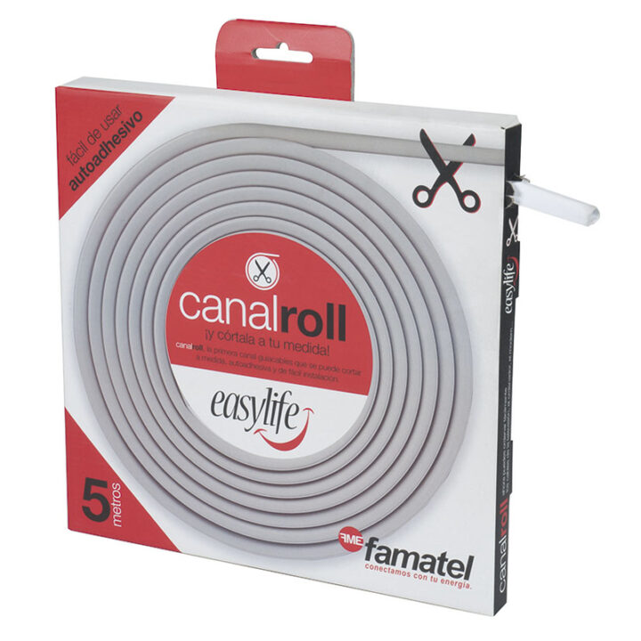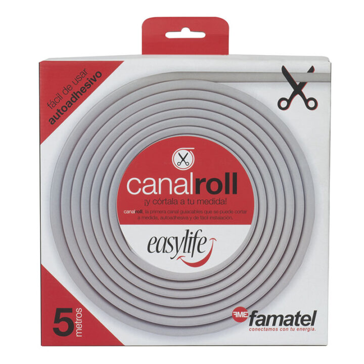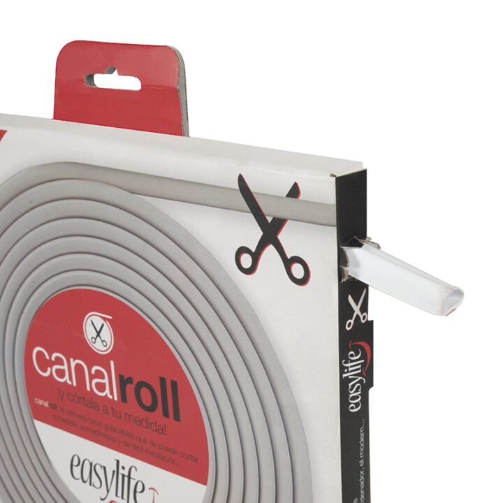 5 metros de largo y 10×10 mm en color blanco. Se presenta en una caja.