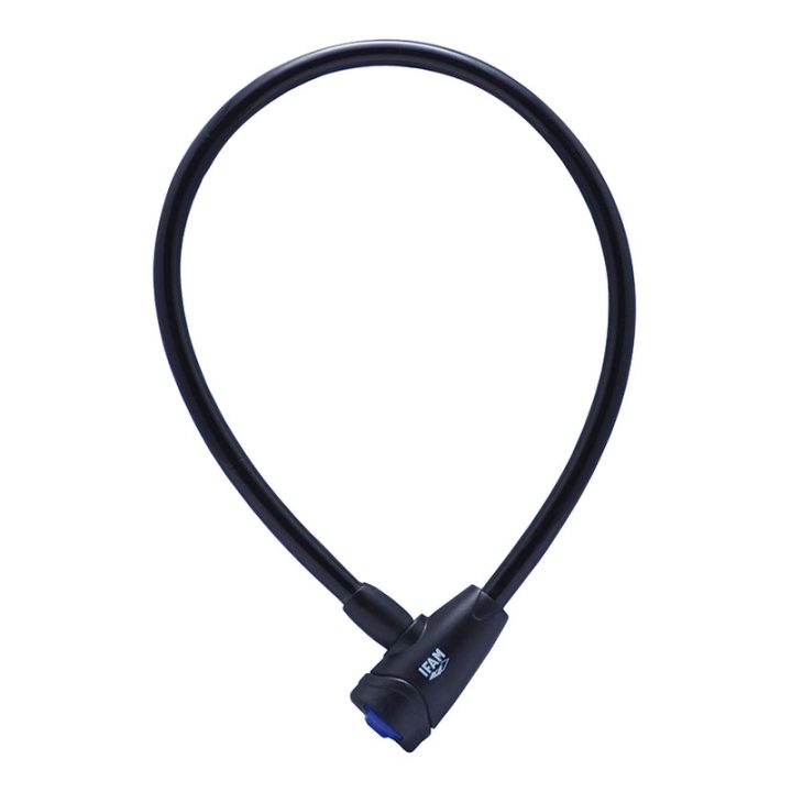 Cable de acero con cobertura plástica. La cerradura es automática y dispone de una tapa para evitar la entrada de agua, polvo y suciedad. Incluye 2 llaves estriadas.
