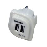 Entrada 250V y salida 5V, 2,1 A. Acabado en color blanco. Se presenta en blíster.