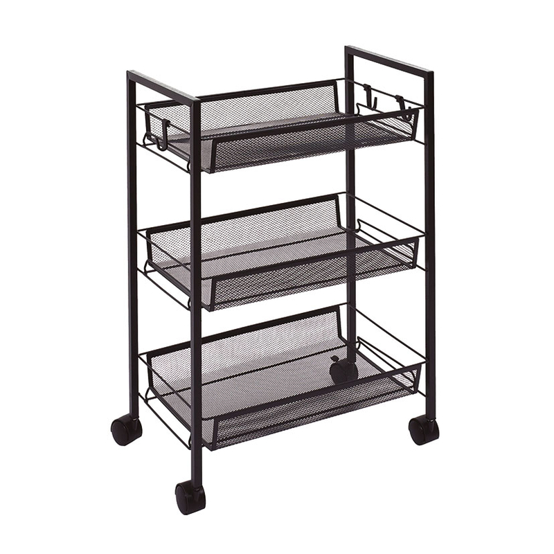 Este carro auxiliar está fabricado en metal pintado en color negro. Tiene un diseño moderno que encajará perfectamente con tu decoración. Lo puedes mover fácilmente gracias a las ruedas que lleva incoporadas. Dispone de 3 compartimentos en diferentes alturas. Lo puedes transportar fácilmente y llevarlo allá donde lo necesites.