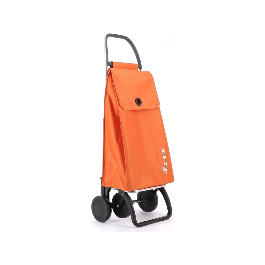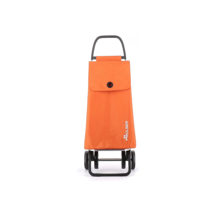 Carro Rolser de aluminio con sistema de 2 y 4 ruedas, diseñado para evitar cargas innecesarias y facilitar el transporte. Su chasis compacto con base abatible y la bolsa AKANTO MF de gran capacidad lo hacen ideal para múltiples usos diarios.