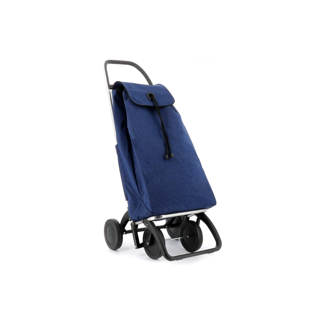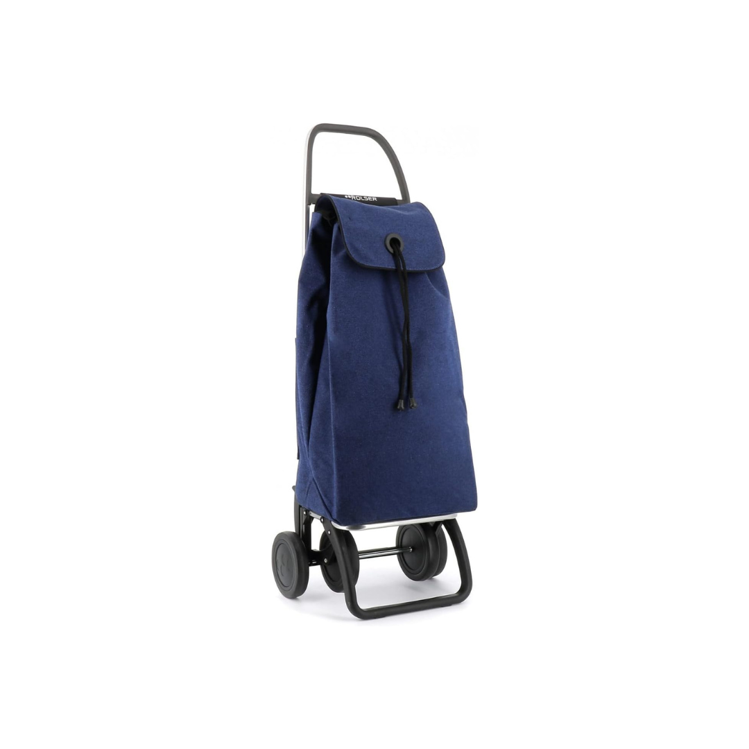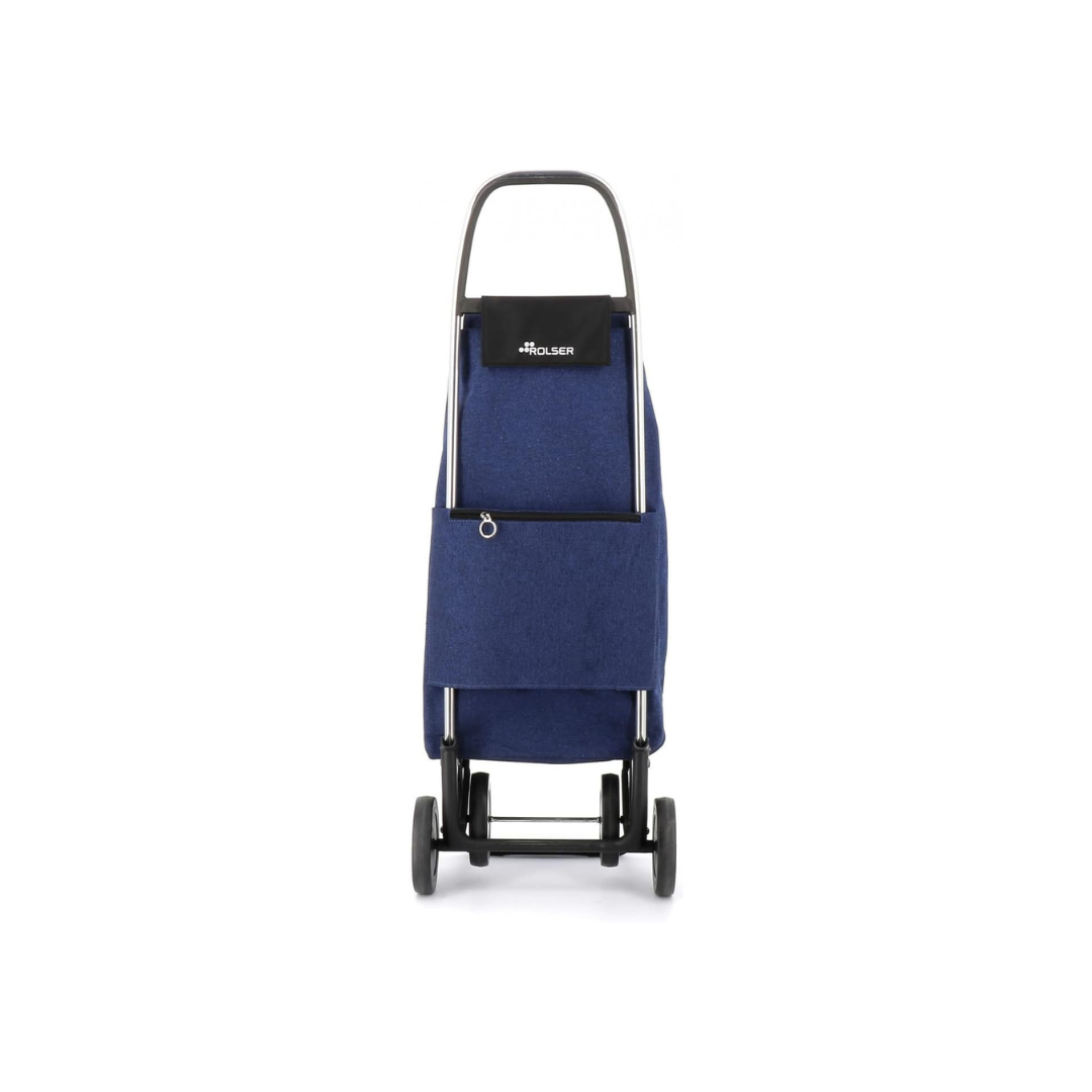 Carro Rolser de aluminio con sistema de 2 y 4 ruedas, diseñado para evitar cargas innecesarias y facilitar el transporte diario. Incorpora chasis plegable con base abatible y bolsa ECOIMAX fabricada con materiales reciclados, ideal para múltiples usos.