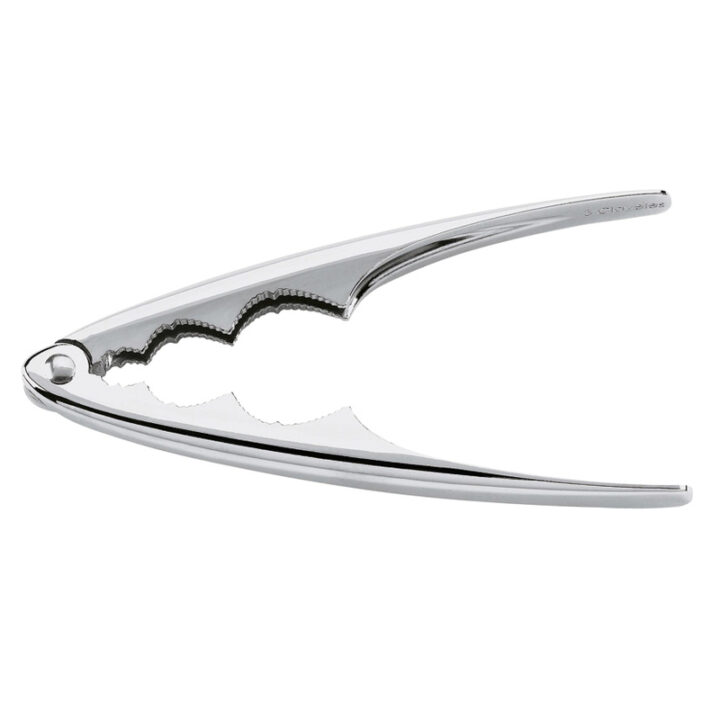 Este utensilio está fabricado en metal cromado. Tiene varias posiciones que se adaptarán a las diferentes medidas de los frutos secos. El cascanueces tiene un muelle que lo mantendrá abierto para facilitarte el uso. Viene presentado en bolsa.