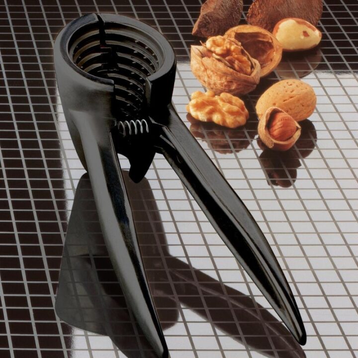 Está fabricado en aluminio lacado en color negro. El diseño del cabezal con forma cónica evita que las cáscaras de las nueces salpiquen. Tiene una longitud de 18 5 cm y una altura de 5,3 cm. Viene presentado en un blíster.