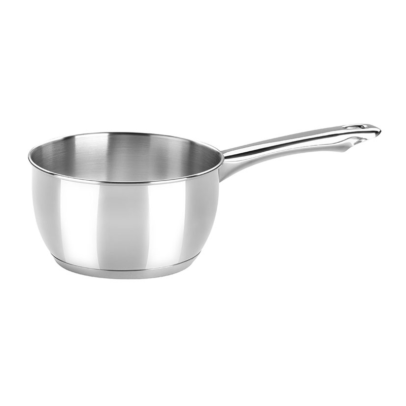 El Cazo Optima 1L está fabricado con acero inoxidable 18/10 de la más alta calidad, proporcionando un estilo moderno y contemporáneo. Su triple fondo difusor garantiza una distribución eficiente del calor. Es apto para todo tipo de cocinas, incluidas las de inducción, y también es compatible con lavavajillas. Tiene una terminación en acero pulido brillante tanto en el cuerpo como en los mangos y asas. Sus dimensiones: