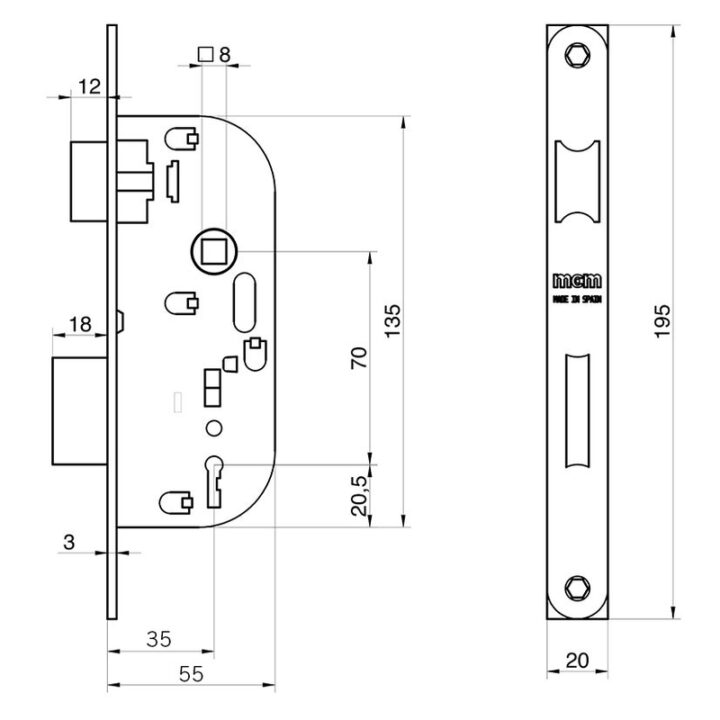 Cerradura de embutir MCM madera modelo 1308 bicromatada