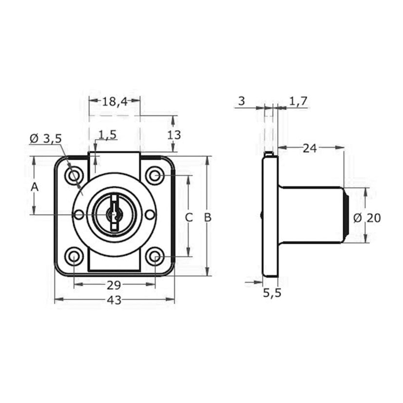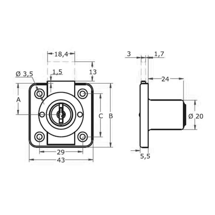 CERRADURA CAJON 361 CAJA 20MM LLAV.IGUAL