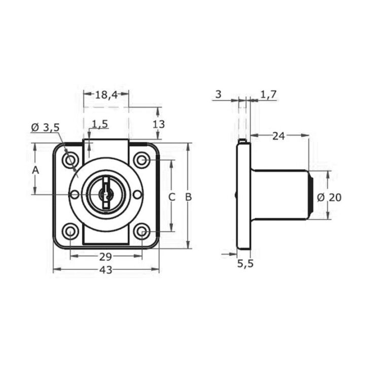 CERRADURA CAJON 361 CAJA 20MM LLAV.IGUAL