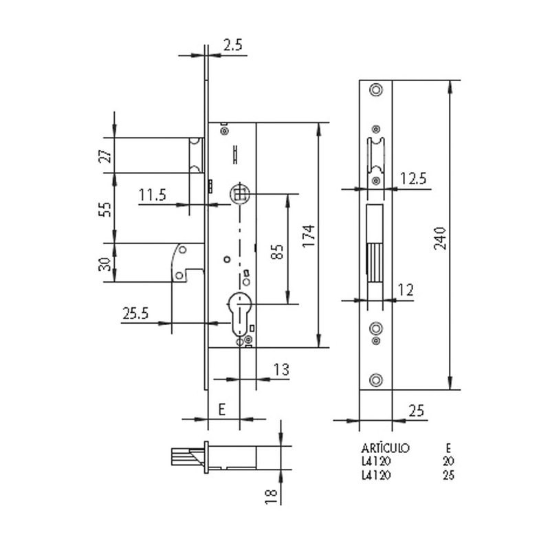 Indicada para carpintería metálica, es vertical con picaportey gancho con cilindro europerfil.