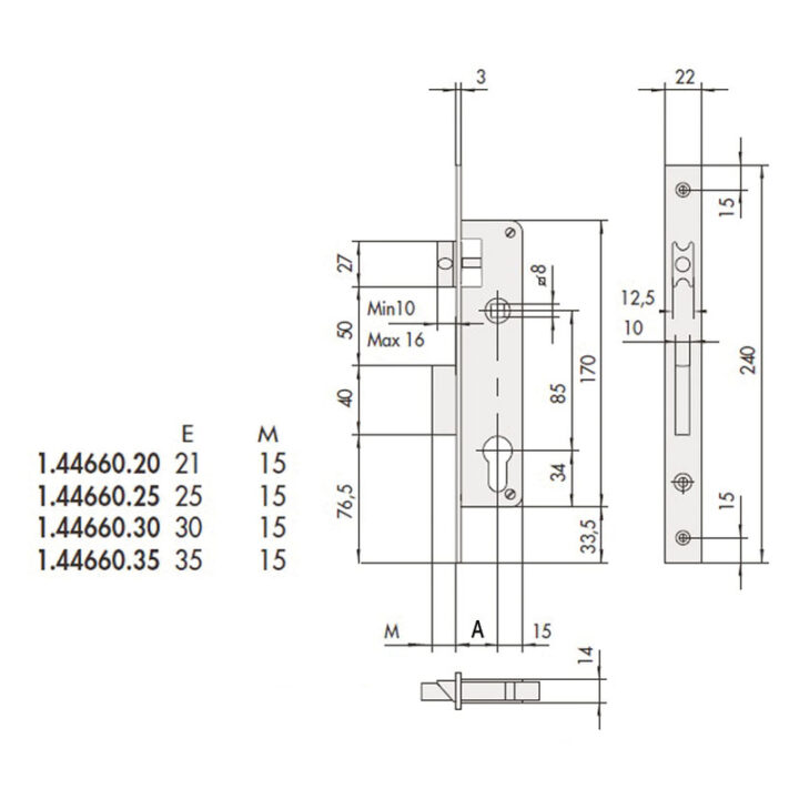 Indicada para carpintería metálica con picaporte y palanca.