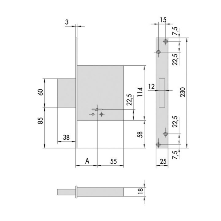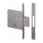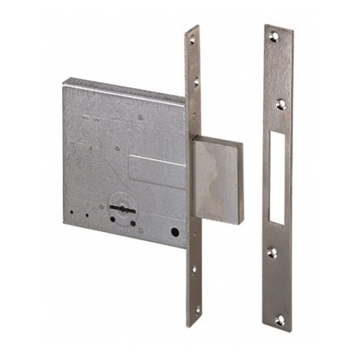 Cerradura de 4 vueltas con palanca. Frente y cerradero de acero satinado niquelado. Caja y palanca de acero. Frente en acero inoxidable. Picaporte y palanca niquelados. Viene presentada en una caja.