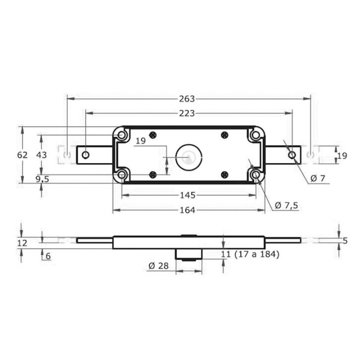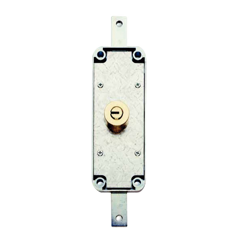 Cerradura indicada para puertas enrollables y basculantes. La caja es de zamak y el cilindro de seguridad es de latón de 28 mm de diámetro.