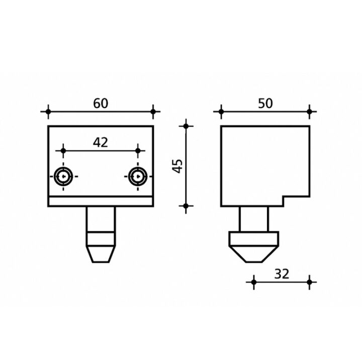 Cerradura con cilindro de seguridad con 3 llaves de puntos. Distancia entre tornillos 42 mm. Incluye cabezal de apertura superior y cerradero cilíndrico empotrable. Se presenta en una caja.