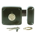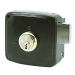 Esta cerradura de sobreponer dispone de cilindro redondo de 50 mm, accionado con llave por ambos lados y palanca a dos vueltas. Tiene un acabado en hierro esmaltado de alta resistencia y está disponible en apertura: mano derecha e izquierda. Viene presentada en una caja.