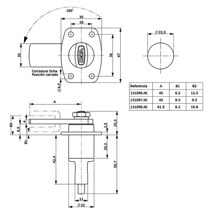 Esta cerradura es metálica en color cromado y funciona mediante cierre por giro 180º ø 3 a 8mm. Viene presentado en una caja y se sirven 10 unidades.
