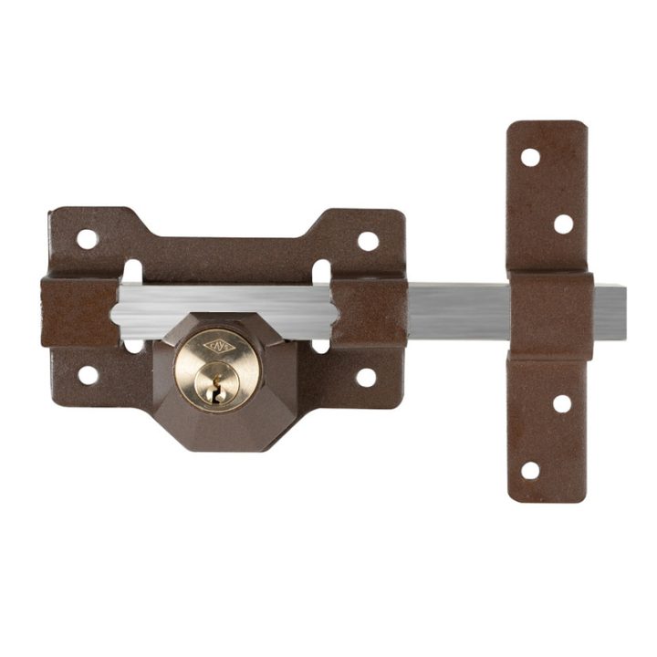 Cerrojo con doble cilindro redondo de 45 mm. Tiene un acabado pintado. Se presenta en una caja.