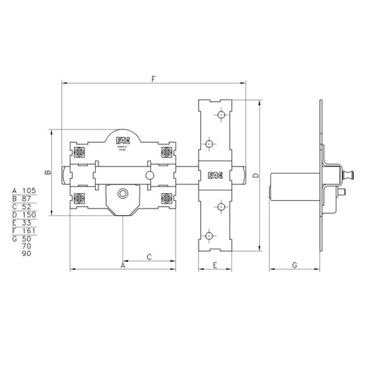 Cerrojo para llave exterior y botón interior. Incorpora una barra en acero calibrado de 18 mm, placa en acero de 2 mm y cerradero en acero de 3 mm. Viene presentado en una caja.