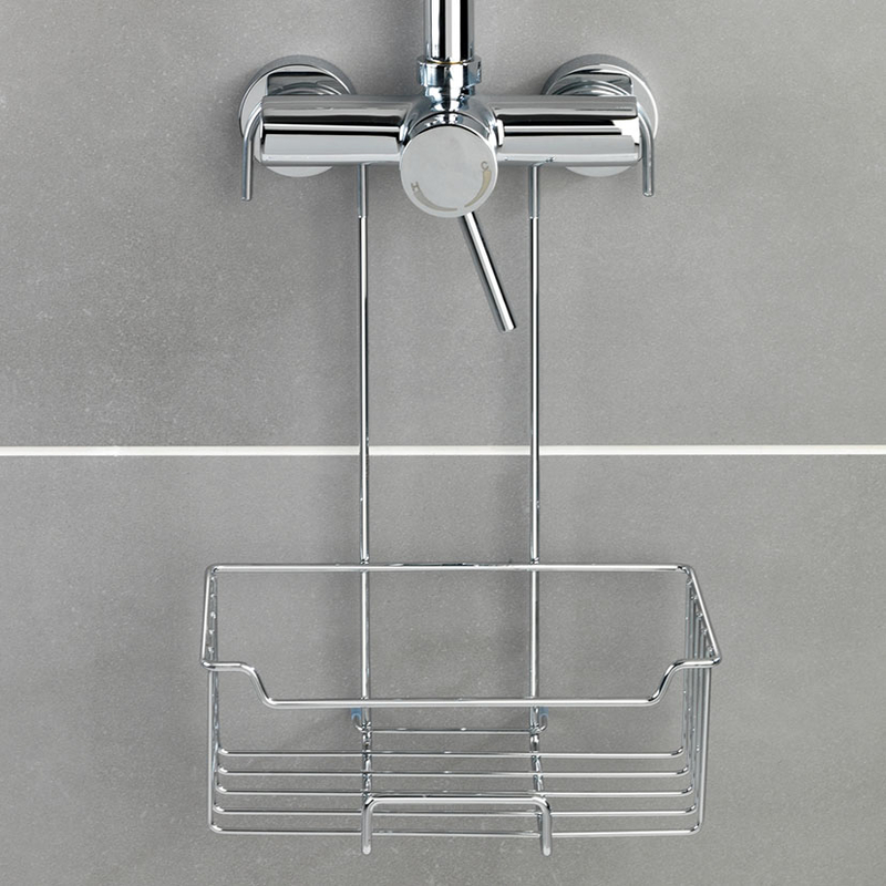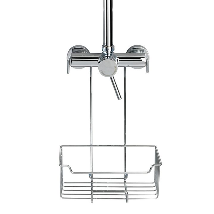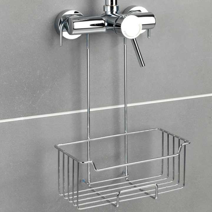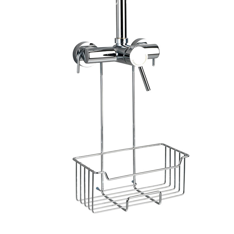 Esta cesta es muy práctica ya que se cuelga en el grifo de la ducha mediante dos ganchos que incorpora en la parte superior para no dañar las baldosas. Tiene los acabados en acero inoxidable Sus dimensiones son 14x36x25 cm. Se presenta en una caja.