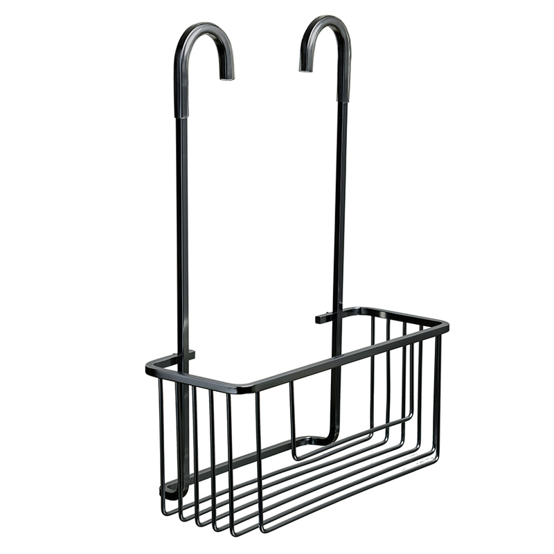 Este cestillo tiene incorpora dos ganchos en la parte superior para colgar en el grifo de la ducha. Fabricado en aluminio con acabado en color negro. En su interior podrás depositar los utensilios de aseo y tenerlos a mano.
