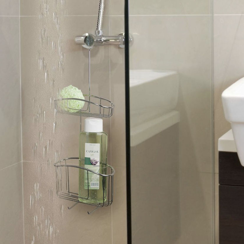 Este cestillo tiene 2 alturas e incorpora un gancho en la parte superior rígido par colgar en la ducha. El cestillo más grande dispone de 2 pequeños colgadores para que puedas colgar la esponja u otro accesorio.