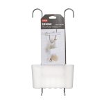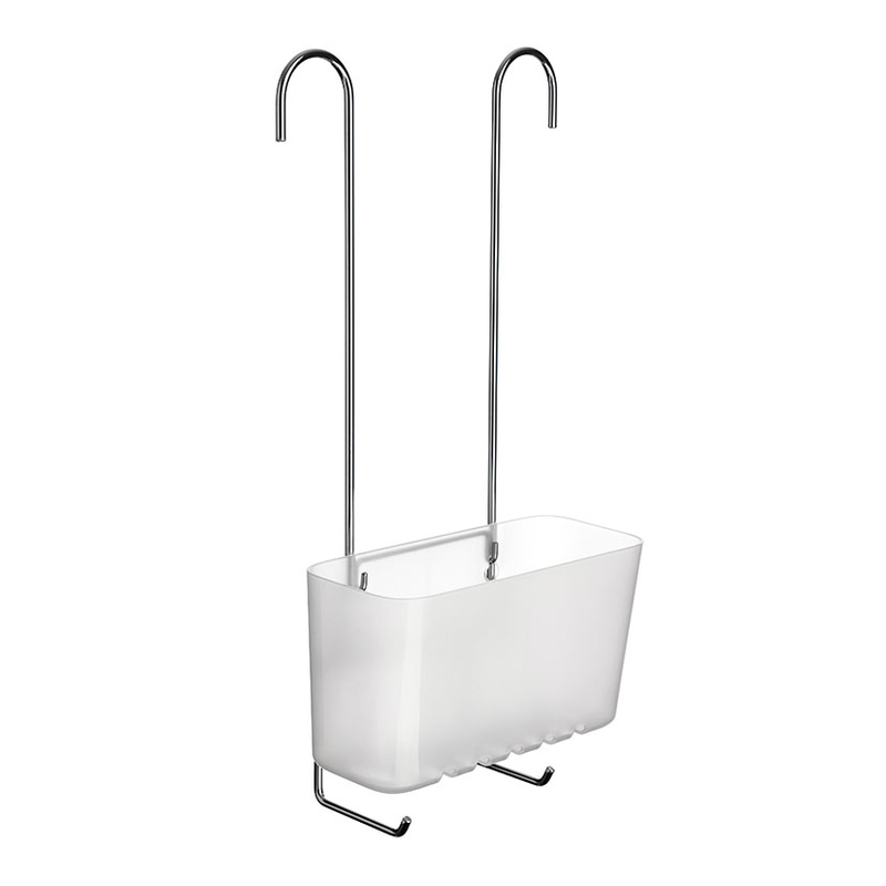 Este cestillo incorpora unas varillas rígidas ajustables a todo tipo de grifos. La cesta está fabricada en plástico translúcido. Además dispone de dos ganchos inferiores para que puedas colgar esponjas, cepillos u otro accesorio.