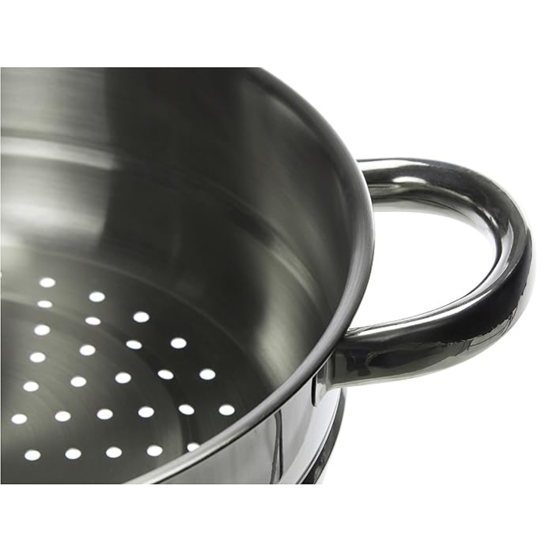 Cestillo vapor Oslo de IBILI, fabricado en acero inoxidable, con un diámetro de 24 cm y asas resistentes para ollas y cacerolas. Ideal para cocinar al vapor de forma saludable y práctica.