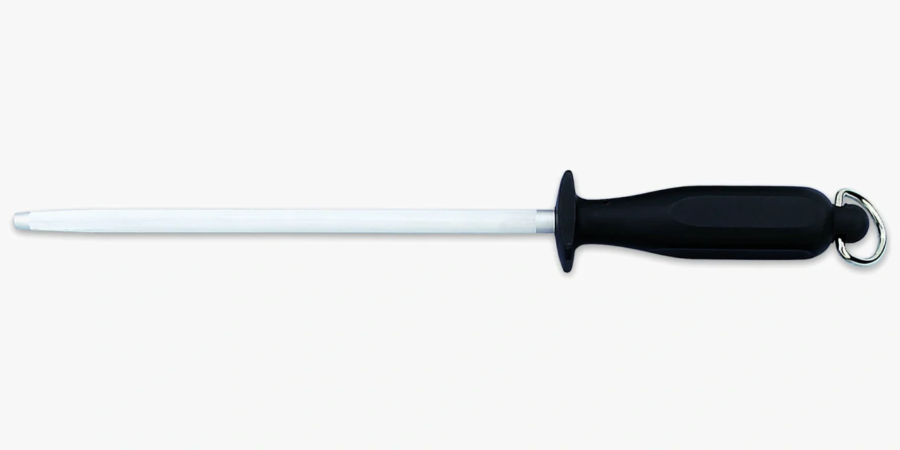 Su mango con núcleo duro de polipropileno ofrece un agarre dinámico, cómodo y antideslizante, mientras que su diseño circular permite un afilado rápido y preciso, independientemente del lado de la chaira que uses.