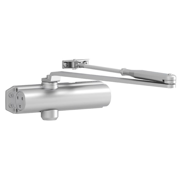 Este cierrapuertas destaca por su gran versatilidad y diseño actual. Dispone de 3 válvulas de regulación de velocidad. Es apto para puertas de apertura a derecha e izquierda y puertas con protección contra fuego y humo. Tiene capacidad de contral puertas de hasta 110 cm de ancho (fuerza EN4 norma EN1154). La fuerza de cierre es configurable y el ángulo de apertura es de hasta 180º. Está disponible en 2 acabados diferentes. Cumple con la normativa EN1154 tamaño 2/3/4. Se presenta en una caja. Además, si quieres complementar la información del producto puedes consultar la ficha técnica que tenemos en nuestra WEB.