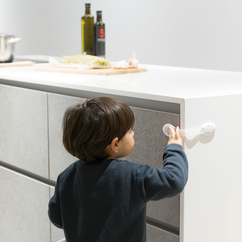 El cierre multiusos se instala mediante adhesivos 3M. Es útil para evitar que los niños abran el frigorífico como la tapa de WC o armarios que puedan contener materiales peligrosos. Es cómodo y fácil de desbloquear para un adulto. Al ser regulable se puede cortar a la medida necesaria. Gracias a su sistema de apertura tiene una mayor durabilidad que otros cierres. Se presenta en un blíster de 2 unidades.