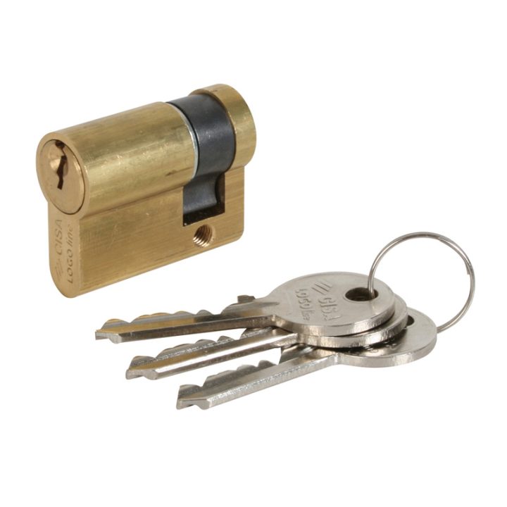 Cilindro serreta de europerfil con excéntrica de 15 mm y 3 llaves de latón niqueladas. Viene presentado en caja.