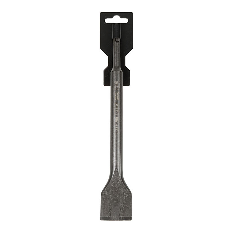Este cincel acodado 30º de 250/40 mm, gran calidad, resistencia y durabilidad, te ayudará a extraer el máximo partido de tu martillo electroneumático y a obtener resultados profesionales. Se presenta en una placa.