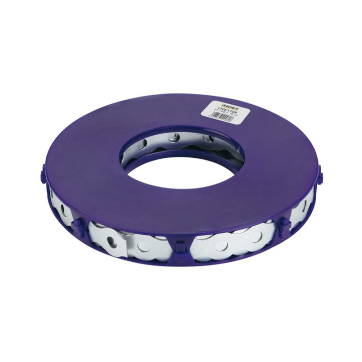 Esta cinta está fabricada en acero inoxidable tiene un ancho de 17 mm y un espesor de 0,7 mm. El diámetro de los orificios es de 5,2 mm. Se presenta en un rollo de 10 metros dentro de una carcasa de plástico en color azul.